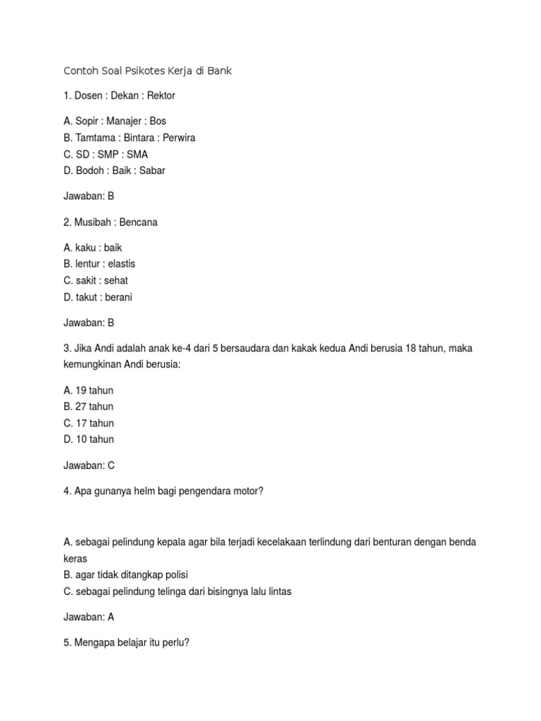 Selamat membangun karir dalam dunia kerja bagi kamu yang sedang melamar. Check spelling or type a new query. Berikut ini jenis soal psikotes yang wajib kamu kuasai. Salah satunya adalah tes psikotes yang dimana di. Jika kamu melamar posisi yang melibatkan banyak kegiatan menghitung dengan rumus seperti data analyst, finance atau software.